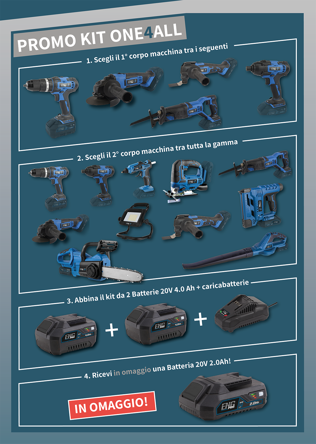 Graffettatrice e Sparachiodi - Linea professionale ONE4ALL 20V ENGPRO 1B20-GRAF