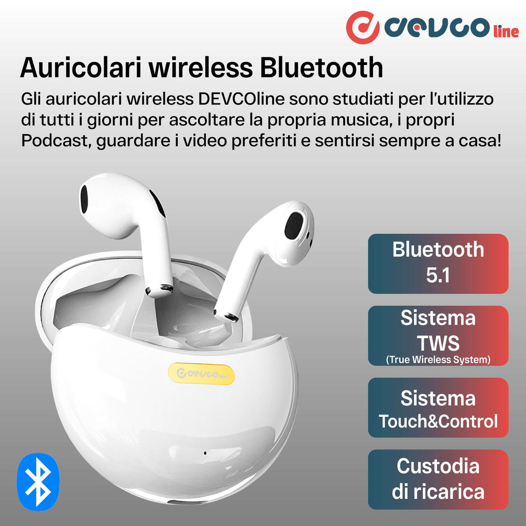 Auricolari Bluetooth 5.1 Wireless Colorati - DEVCOline - AT AU TWS