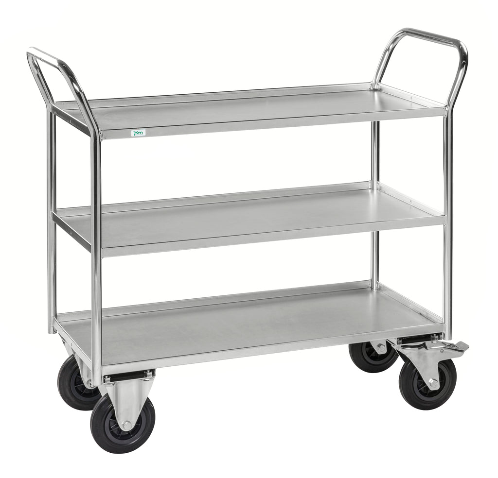 Carrello robusto completamente saldato in lamiera di metallo con bordo, 3 ripiani. Ideale per oggetti pesanti. Elettro galvanizzato