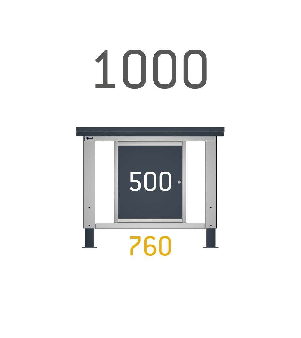 L'armadio a un cassetto e una porta misura 500 x 607 x 570 mm di altezza e la portata dei cassetti è di 25 kg.