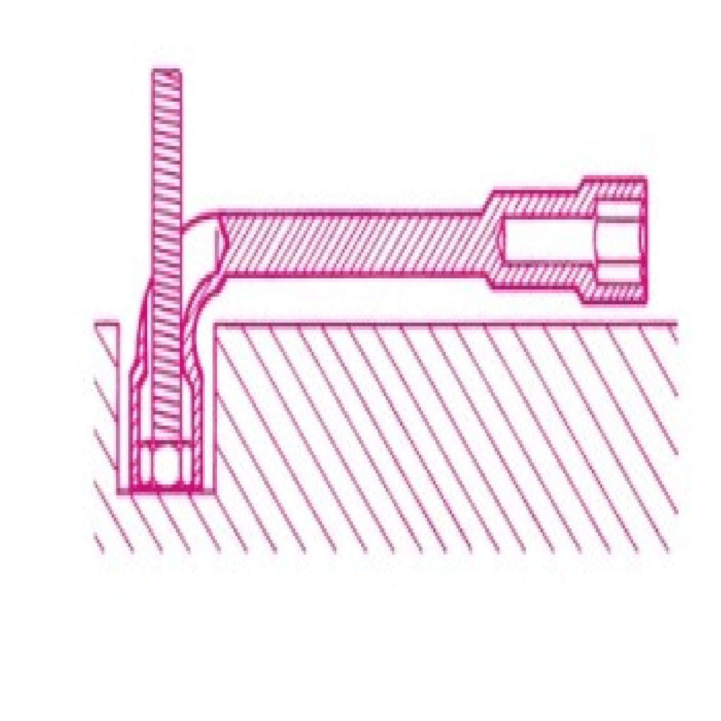 • Il foro sul lato corto permette l'accesso al dado anche in caso di filettature sporgenti.