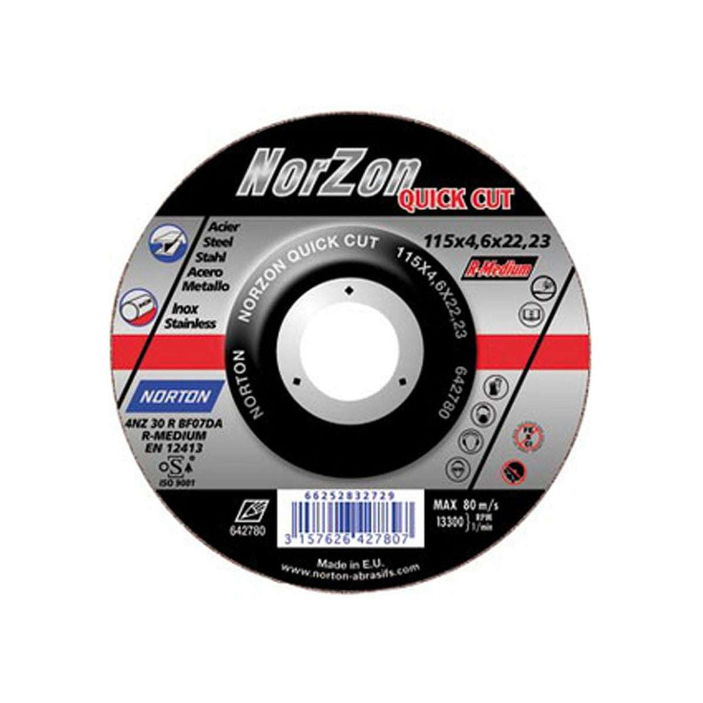 Disc Ultra Thin Cut-Off for angle grinder - METAL INOX - Norton NORZON QUICK CUT - 115x1.6x22.23mm