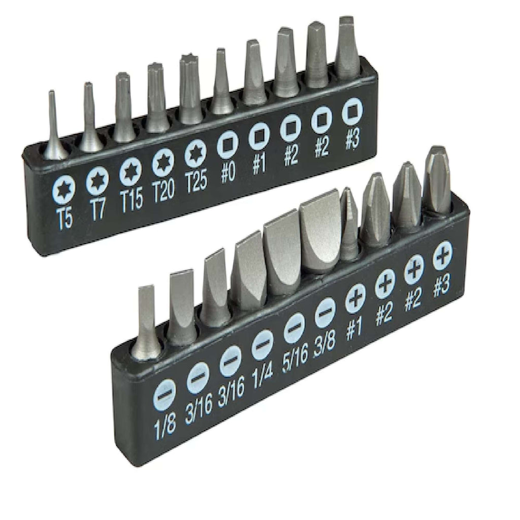 In acciaio al cromo vanadio con impugnatura in bi-componente. Indicazione del tipo di punta sull’impugnatura – per una veloce selezione del giravite da utilizzare. Con busta in nylon per il trasporto.