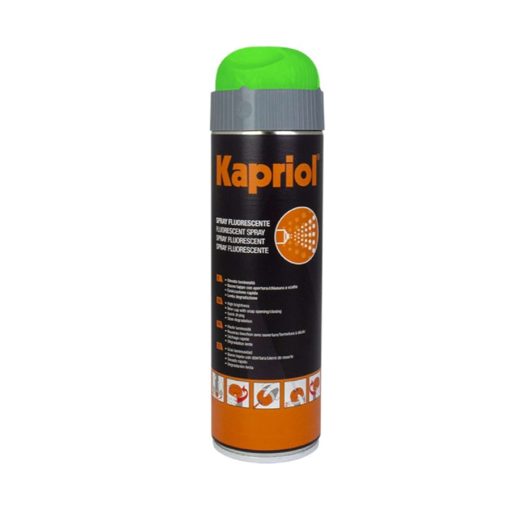Lo spray fluorescente Kapriol è indicato per l'uso su superfici con una buona aderenza come cemento e asfalto, ed è disponibile in 5 diverse colorazioni.